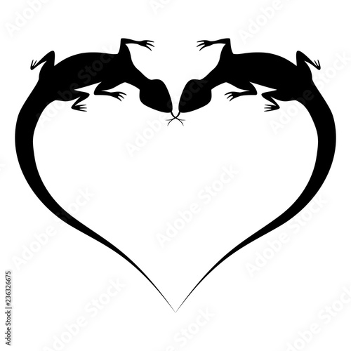 © yurich84, Naklejka premium Two lizard's silhouette on Valentine shape on white