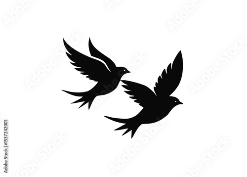 © Mithun, Obraz premium Two Lovebirds in Flight – Black Silhouette Isolated on White Background