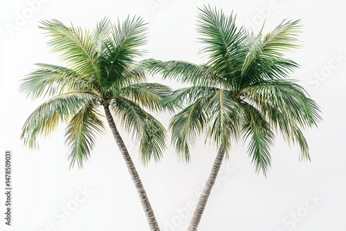 © Aimage, Fototapeta premium Two Lush Green Palm Trees Against a White Background