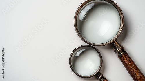 Fototapeta premium Two magnifying glasses of different sizes on a plain background.