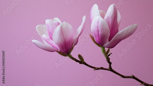 © MINHOO, Fototapeta premium Two Magnolia Blossoms on Pink Background