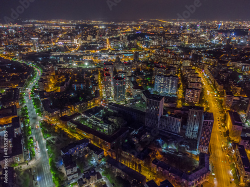 © Oleh Rode, Fototapeta premium Two main roads at the city at night. Night Kyiv city with lights