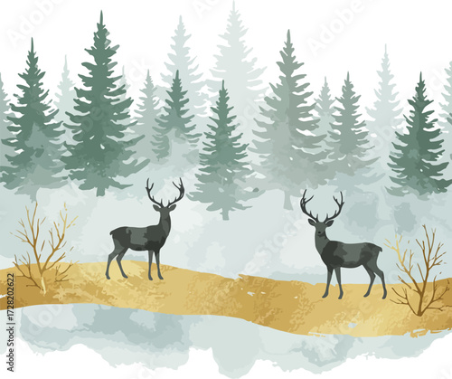 Obraz premium Two majestic deer stand proudly in a serene winter landscape showcasing...