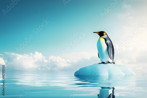 Fototapeta premium Two majestic emperor penguins stand proudly on the Antarctic ice, a testament...