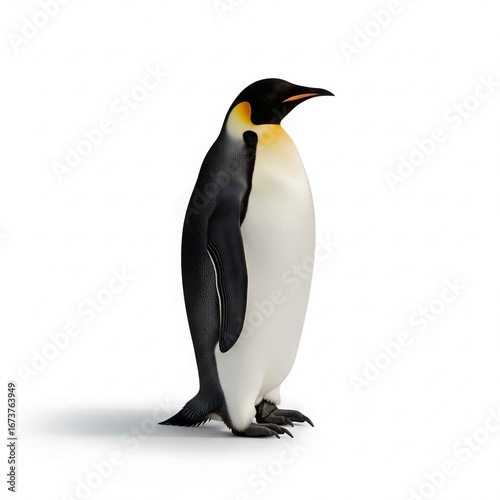 © Shahriar, Fototapeta premium Two majestic king penguins standing isolated on a stark white background