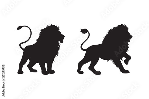© Sadek, Obraz premium Two Majestic Lion Silhouettes Against a White Background
