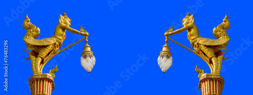 Fototapeta premium two male bird with human head hand hold street lamp decorative r