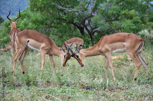 © gallas, Fototapeta premium two male impala antelope in fight in Kruger national park in South Africa