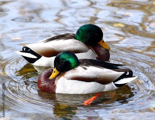 Fototapeta premium Two mallard ducks in a pond