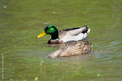 Fototapeta premium Two Mallard Ducks swimming on lake