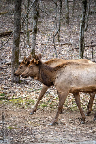 © Justin Mueller, Fototapeta premium two manitoban elk walking through the woods