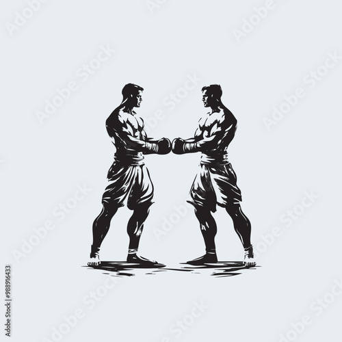 Fototapeta premium Two Martial Artists Facing Off Vector in Black and White