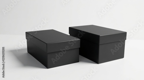 © BokehBox, Obraz premium Two Matte Black Rectangular Boxes on a White Background Perfect for Product Presentation and Packaging Design