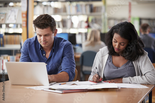 Fototapeta premium Two Mature Students Working On Laptop In College Library