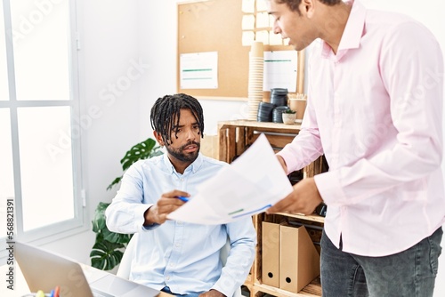 Fototapeta premium Two men business workers discussing working at office