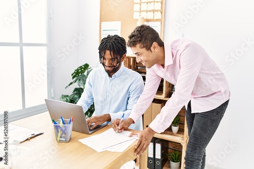 Fototapeta premium Two men business workers smiling confident working at office