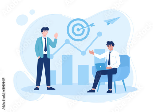 © Kinn Studio, Fototapeta premium Two men discuss annual business targets concept flat illustration