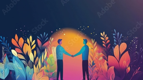 © Sakdecha, Obraz premium Two Men in Vibrant Nature