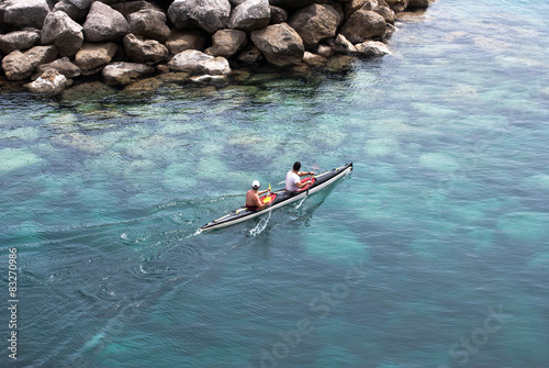 © gigadesign, Fototapeta premium Two men padding in a canoe