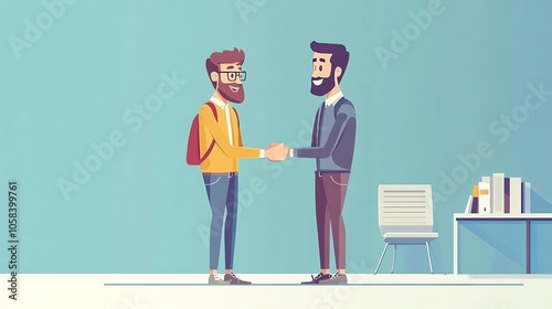 Obraz premium Two men shaking hands in a modern office environment, illustrating...