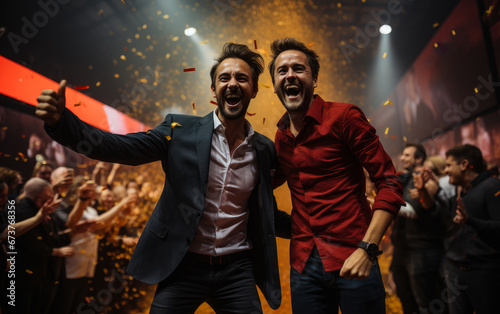 © Vadim, Obraz premium Two Men Standing in Front of a Crowd