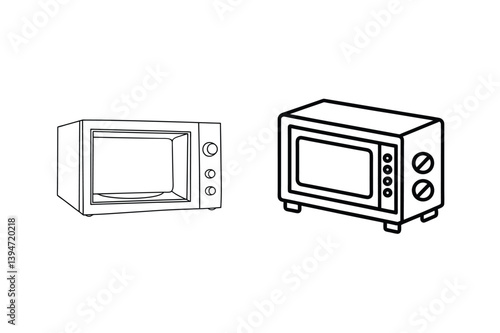 © Rita, Obraz premium Two Microwave Oven Outline Illustrations Kitchen Appliance Vector Designs