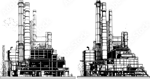 © designknowledge, Obraz premium Two Modern style Factories designs, Modern style Factories vector illustration