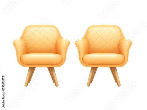 Fototapeta premium Two modern yellow armchairs with quilted upholstery and wooden legs, placed...