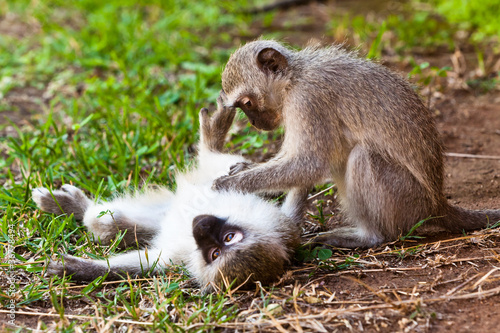 Obraz premium Two monkey playing on the ground