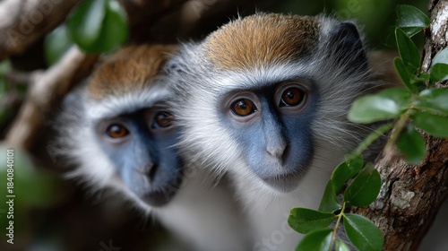 © Mrammon, Fototapeta premium Two monkeys are looking at the camera