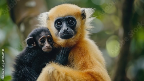 © Fotograf, Fototapeta premium Two monkeys perched on a tree, suitable for nature and wildlife themes