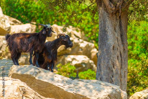 © kosmos111, Fototapeta premium two mountain goat in natural environment
