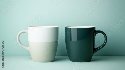 © NawasenaRid, Obraz premium Two Mugs on Teal Background
