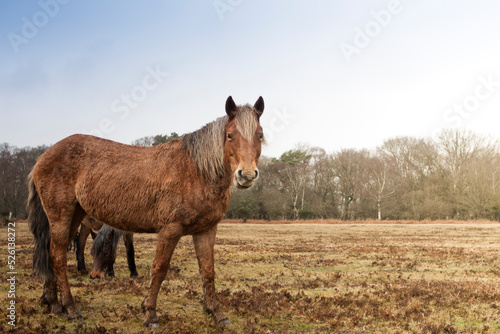 © Mark, Fototapeta premium Two New Forest ponies on heathland outside of Brockenhurst, Hampshire, UK.