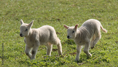 © daseaford, Obraz premium Two Newly Born Lambs Running in a Meadow.