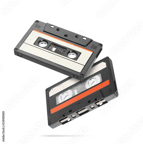 © spaxiax, Obraz premium Two old audio tape compact cassettes isolated