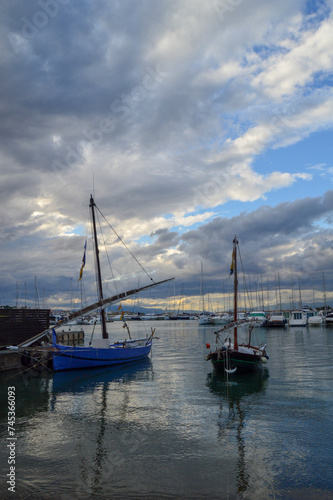 © Mario, Fototapeta premium Two old Latin fishing boats with a cloudy sky