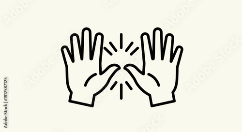 © Homsul, Obraz premium Two open hands reaching towards each other with light rays between them.