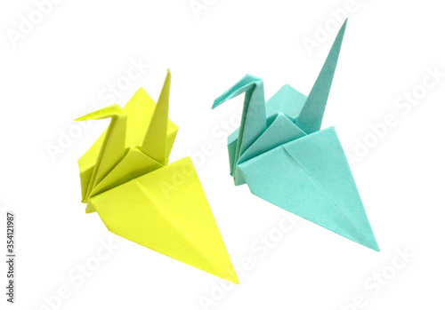 © hachut, Fototapeta premium Two origami birds on a white background