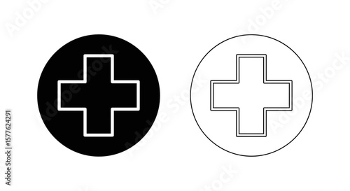 Fototapeta premium Two oval shapes each containing a cross one filled black and one outlined in white