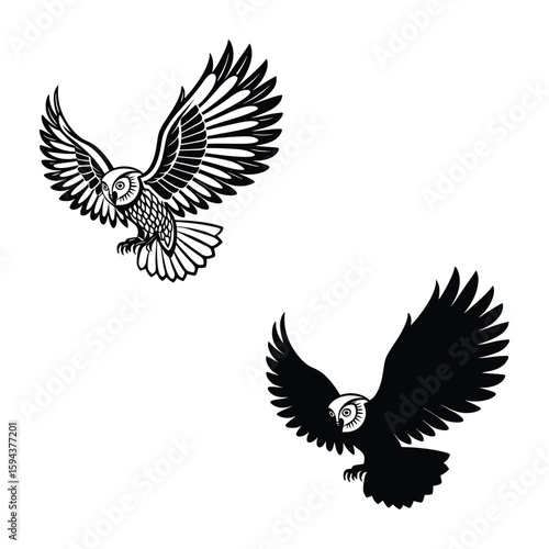 Obraz premium Two owl silhouettes in flight isolated on transparent background