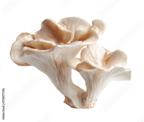Fototapeta premium Two pale beige mushrooms, delicate, and overlapping