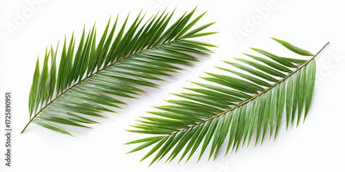 © Aan, Obraz premium Two palm fronds, vibrant green, against a pure white background