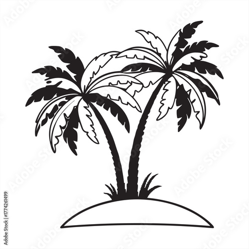 Obraz premium Two palm trees on an island silhouette