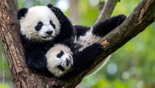 © Mabul, Obraz premium Two panda cubs in a tree