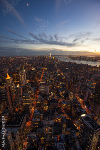 © Lux, Obraz premium Two parallel streets, the 5th and 6th Avenue, converge to a common point in the distance, the World Trade Center