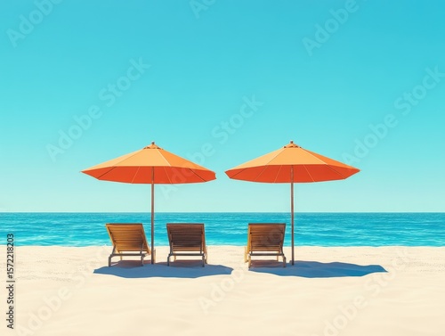 © Popy, Fototapeta premium Two parasol umbrellas casting the shadow over.