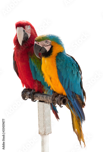 Obraz premium Two parrots isolated on a white background