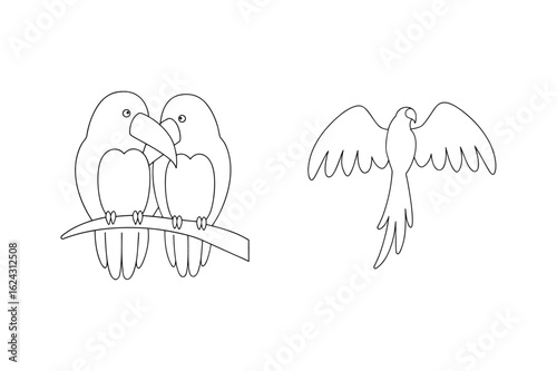 © Sarola, Fototapeta premium Two parrots perched flying parrot bird wings spread