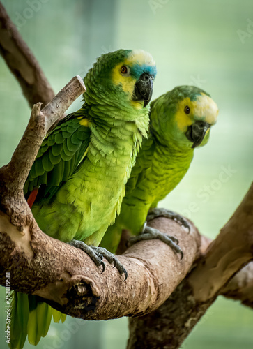 © Jennifer, Obraz premium Two Parrots Perched on a Branch